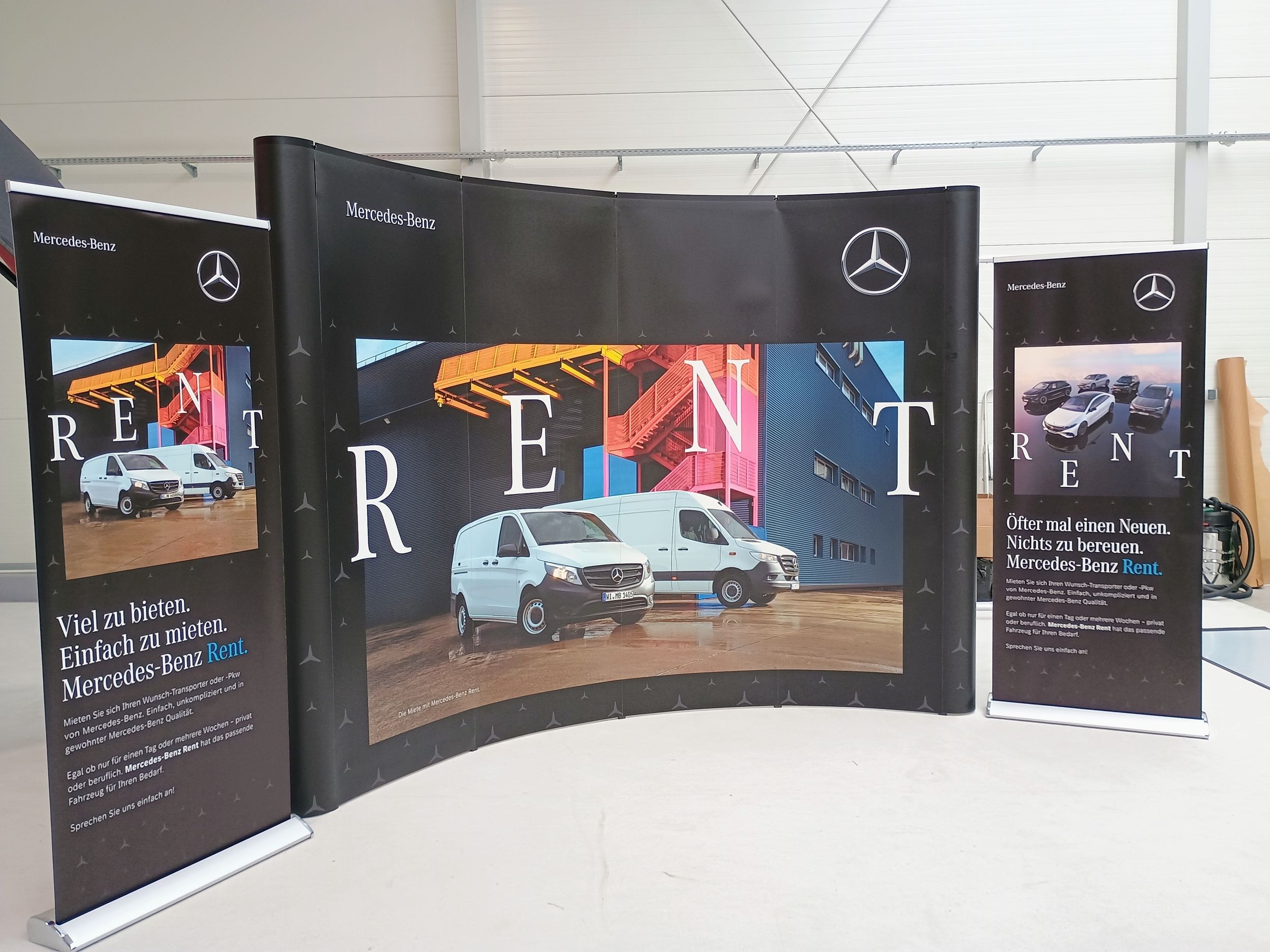 Roll Ups sind eine bewährte und unkomplizierte Lösung für temporäre Werbe- und Informationsflächen. Sie kommen überall dort zum Einsatz, wo Inhalte schnell sichtbar gemacht werden sollen – zum Beispiel auf Messen, Events, Promotions, Roadshows, am Point of Sale oder im Eingangsbereich.