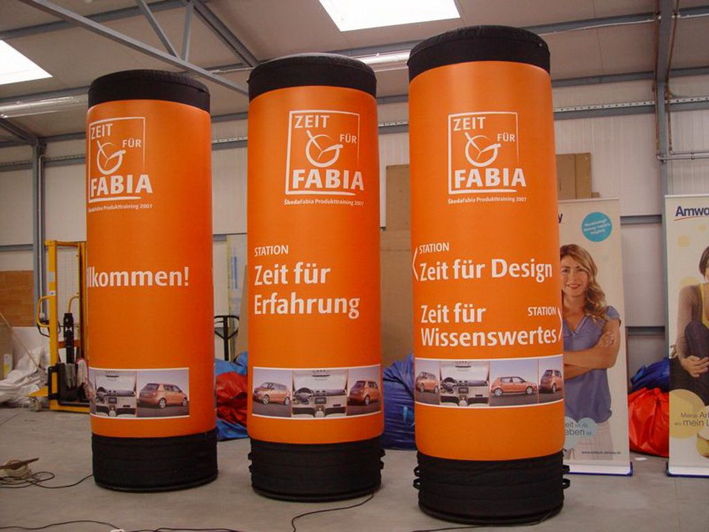 Leuchtsäulen gehören zu den wirkungsvollsten aufblasbaren Werbeträgern. Sie sind bereits aus großer Entfernung sichtbar, setzen Marken klar in Szene und eignen sich ideal für Messen, Events, Promotions sowie den Indoor- und Outdoor-Einsatz.