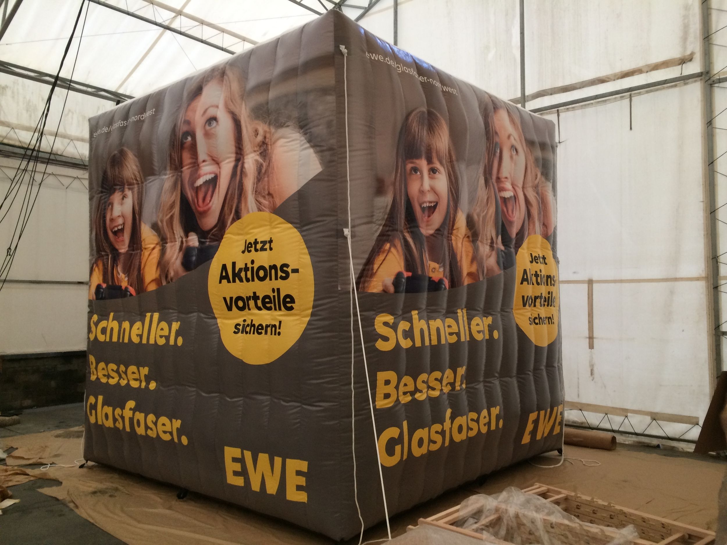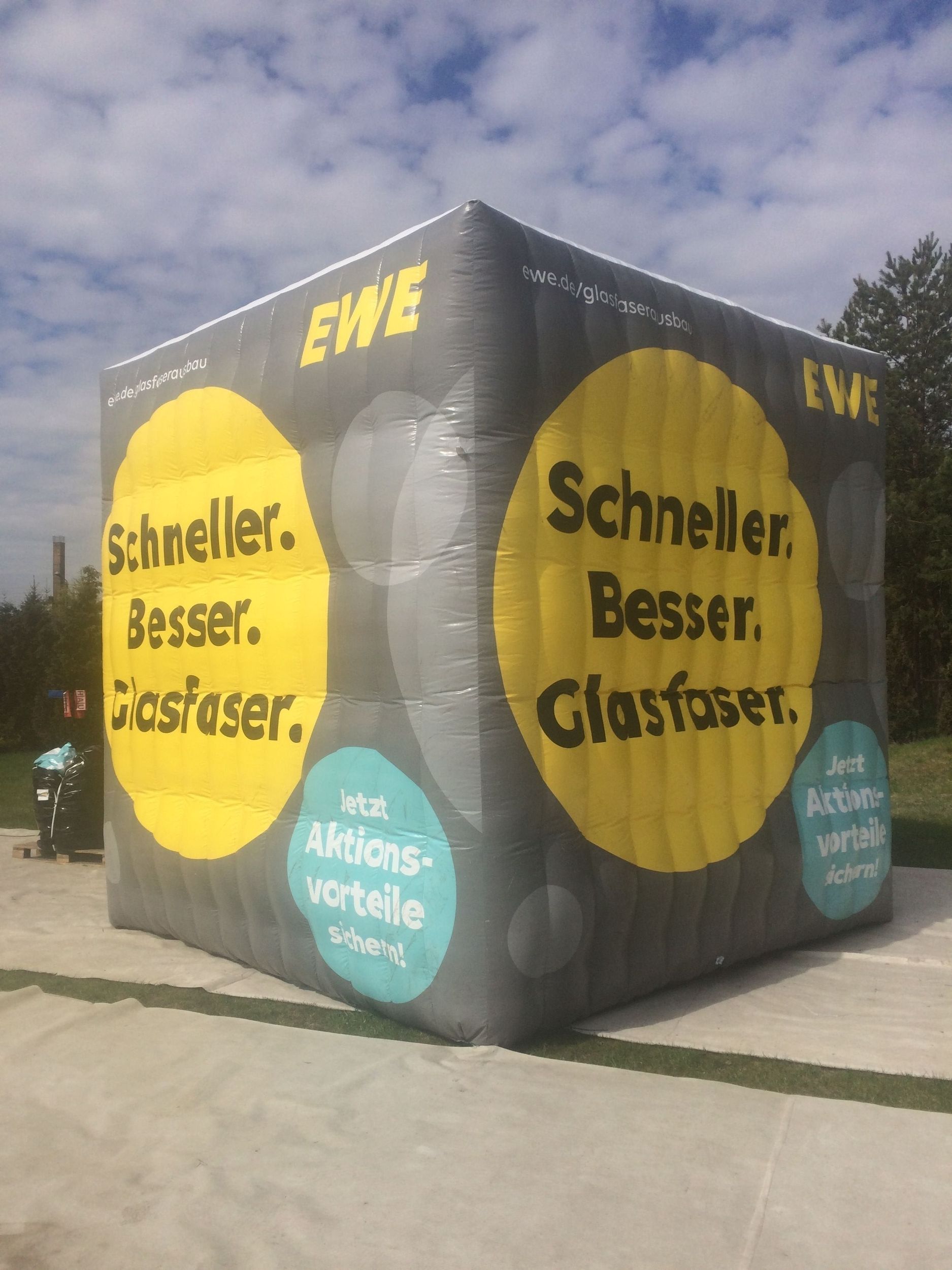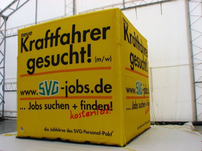 Aufblasbare Würfel und Quader sind flexible Werbeträger mit klarer Geometrie und vielseitigen Einsatzmöglichkeiten. Sie eignen sich für Events, Messen, Promotions oder Aktionsflächen und lassen sich sowohl einzeln als auch in Kombination wirkungsvoll einsetzen.